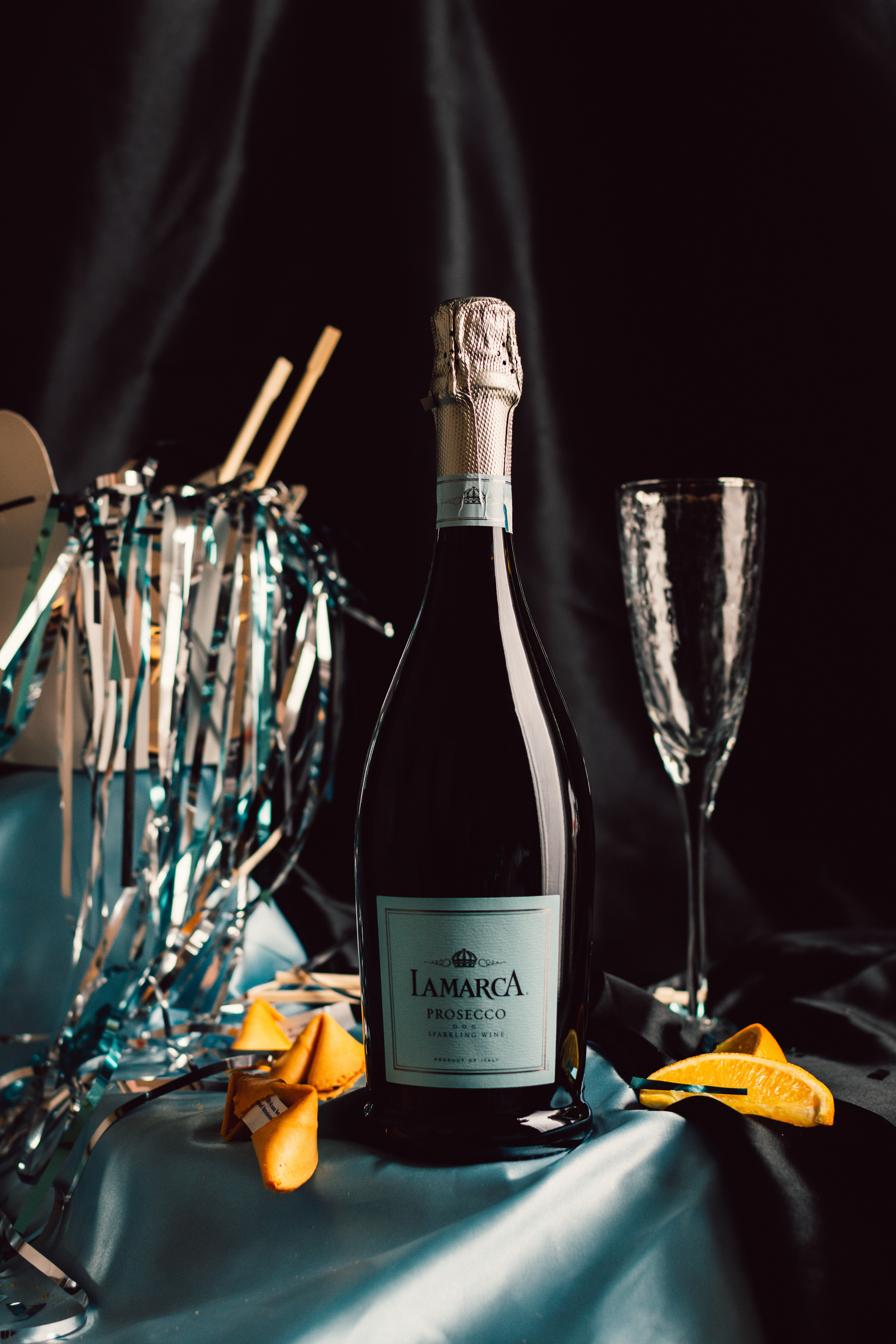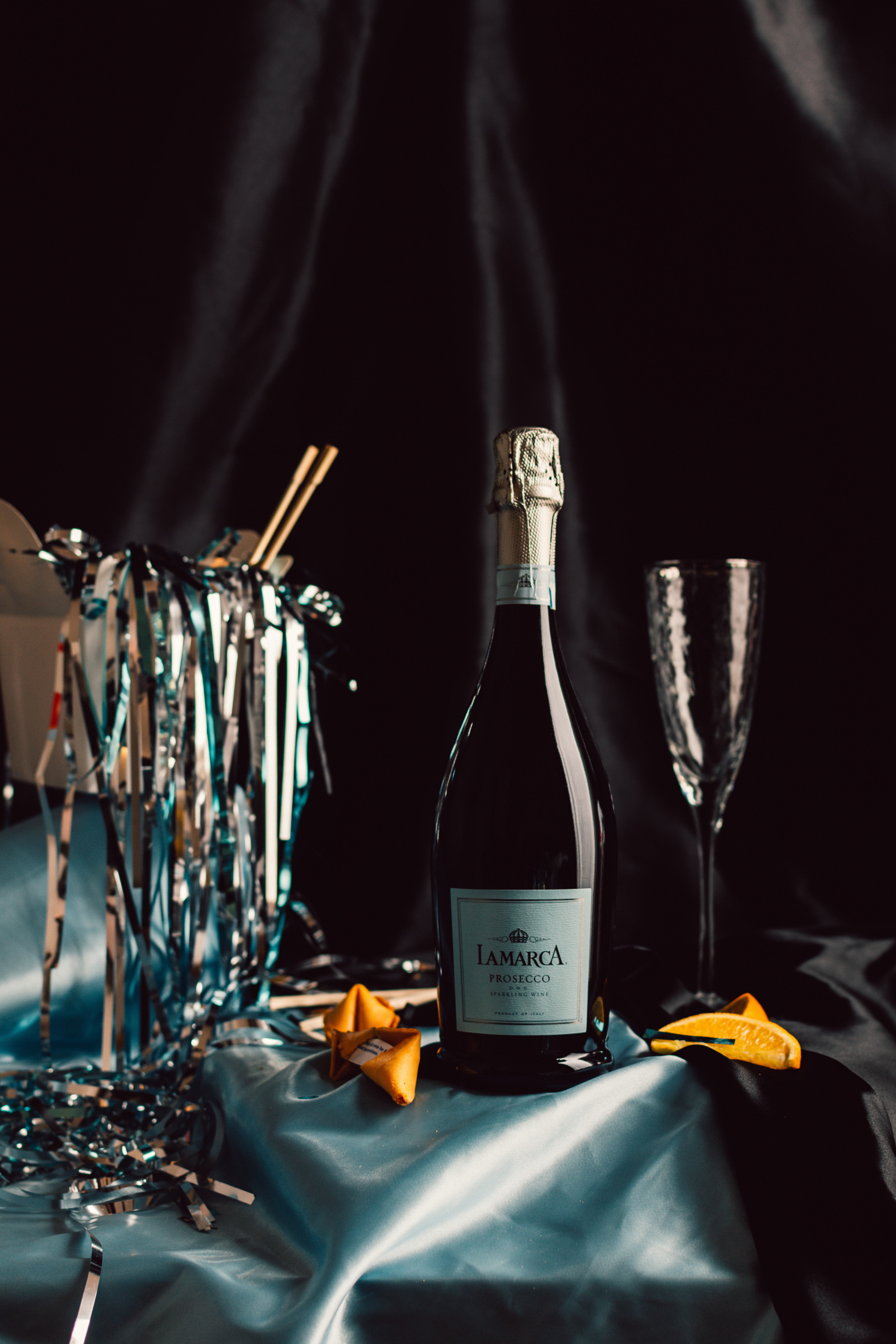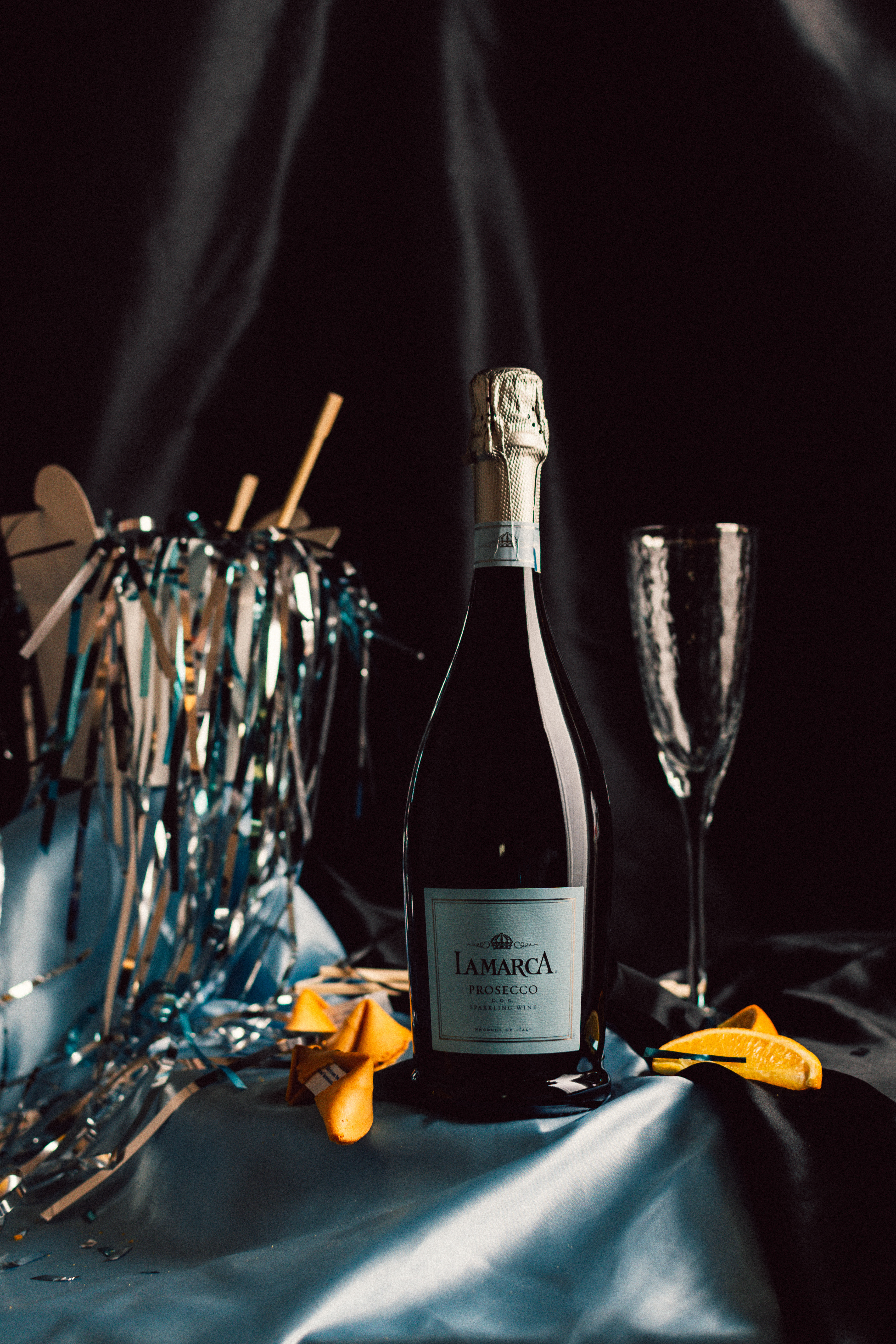 All original product photography concept of La Marca Prosecco. New Year's Eve at home with La Marca Prosecco.